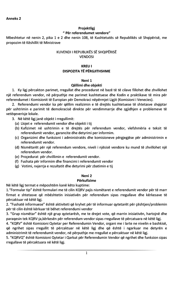 II. Propozime konkrete të drafligjit për referendumin vendor, adresuar edhe Kuvendit të Shqipërisë. I implementuar si projekt në disa qarqe të vendit, u përfshinë në të qytetarë të lokaliteteve të ndryshme, përfaqësues të pushtetit vendor, anëtarë të Komisionit të Posatshëm të Reformës Zgjedhore në Kuvend, stafet akademike të disa universiteteve në vend. Përfshirja diversive e subjekteve të ndryshme, rezultoi në përpilimin e draftligjit si një produkt i ngritur mbi mendimet dhe reflektimet e tyre. Klikoni më poshtë për t'u njohur më gjerësisht me përmbajtjen e këtij projekti.